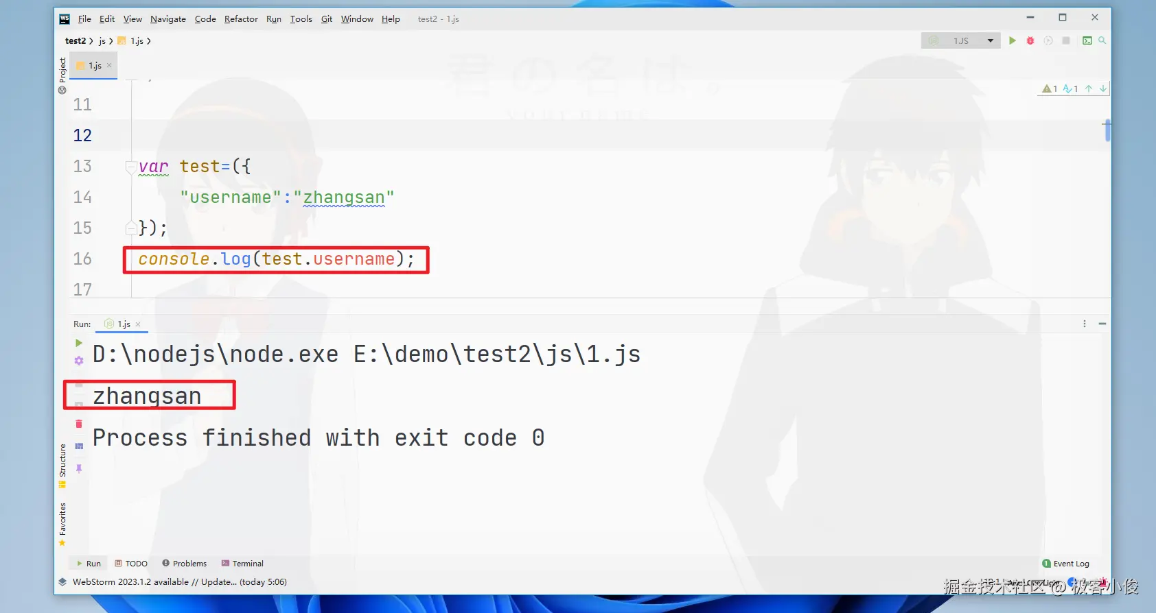 console.log(test.username);