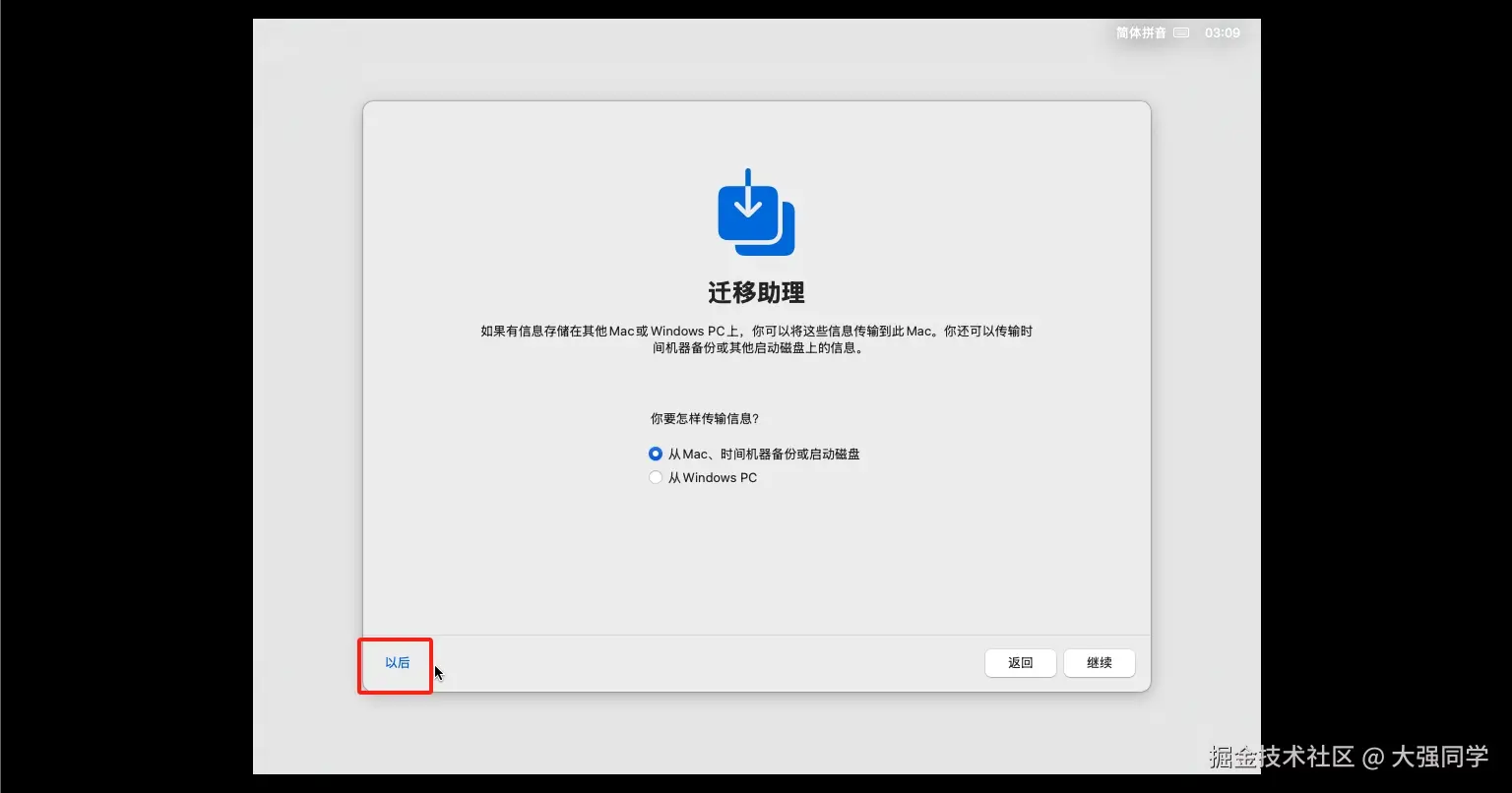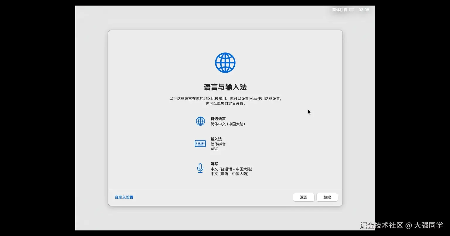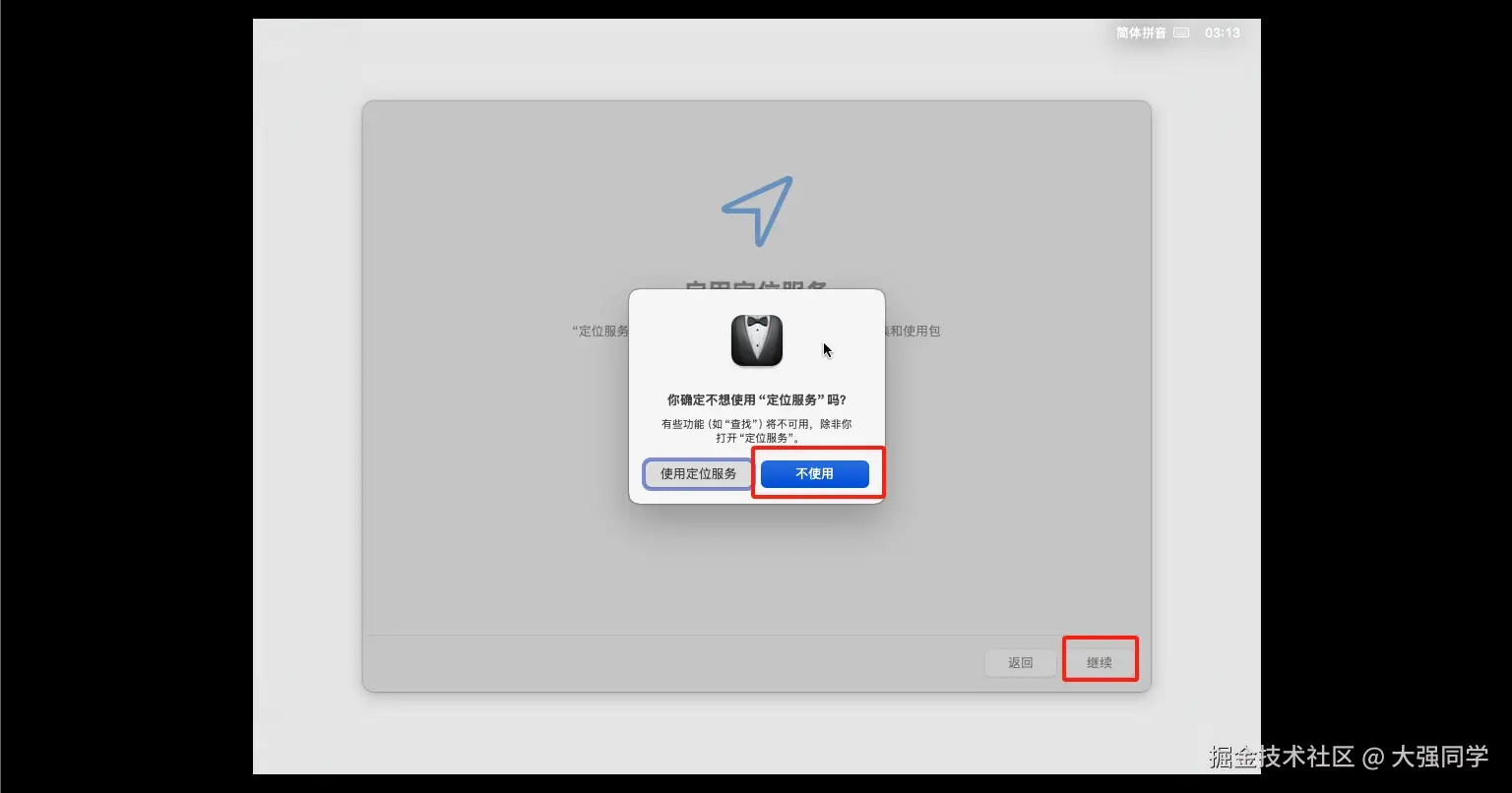 因为我们前面没有登录Apple账户,所以这里需要创建一个本地账户,建议用户名使用纯英文字符
