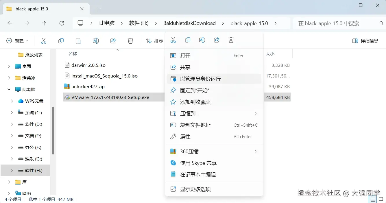 选中“VMware_17.6.1-24319023_Setup.exe”这个文件,右键使用管理员身份运行