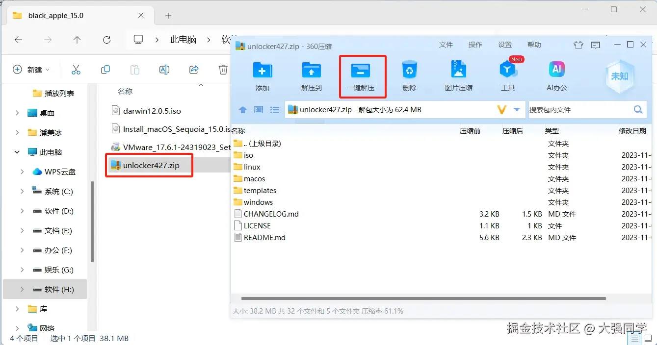 把之前下载得到的“unlocker427.zip”文件解压,我这里是使用360压缩进行解压