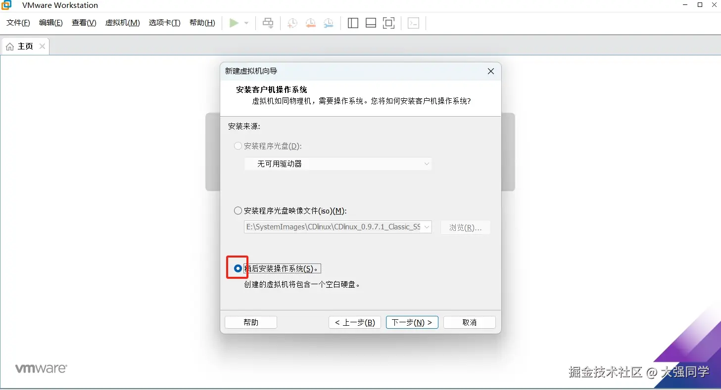 选择“稍后安装操作系统”,点击“下一步”按钮