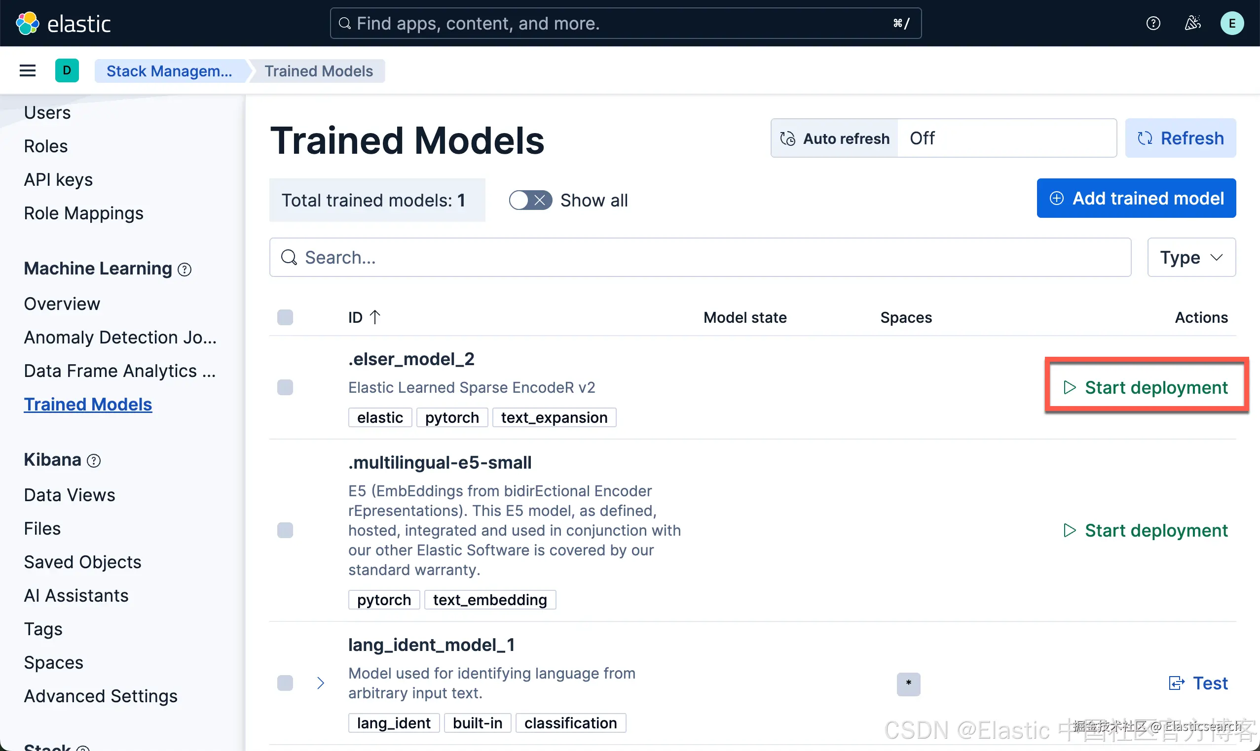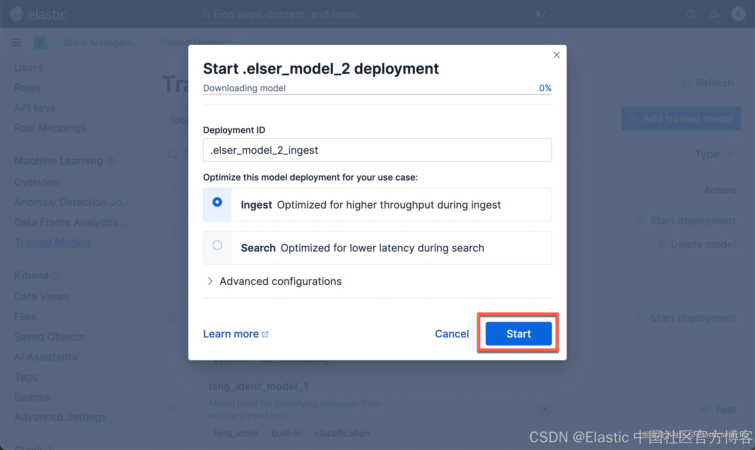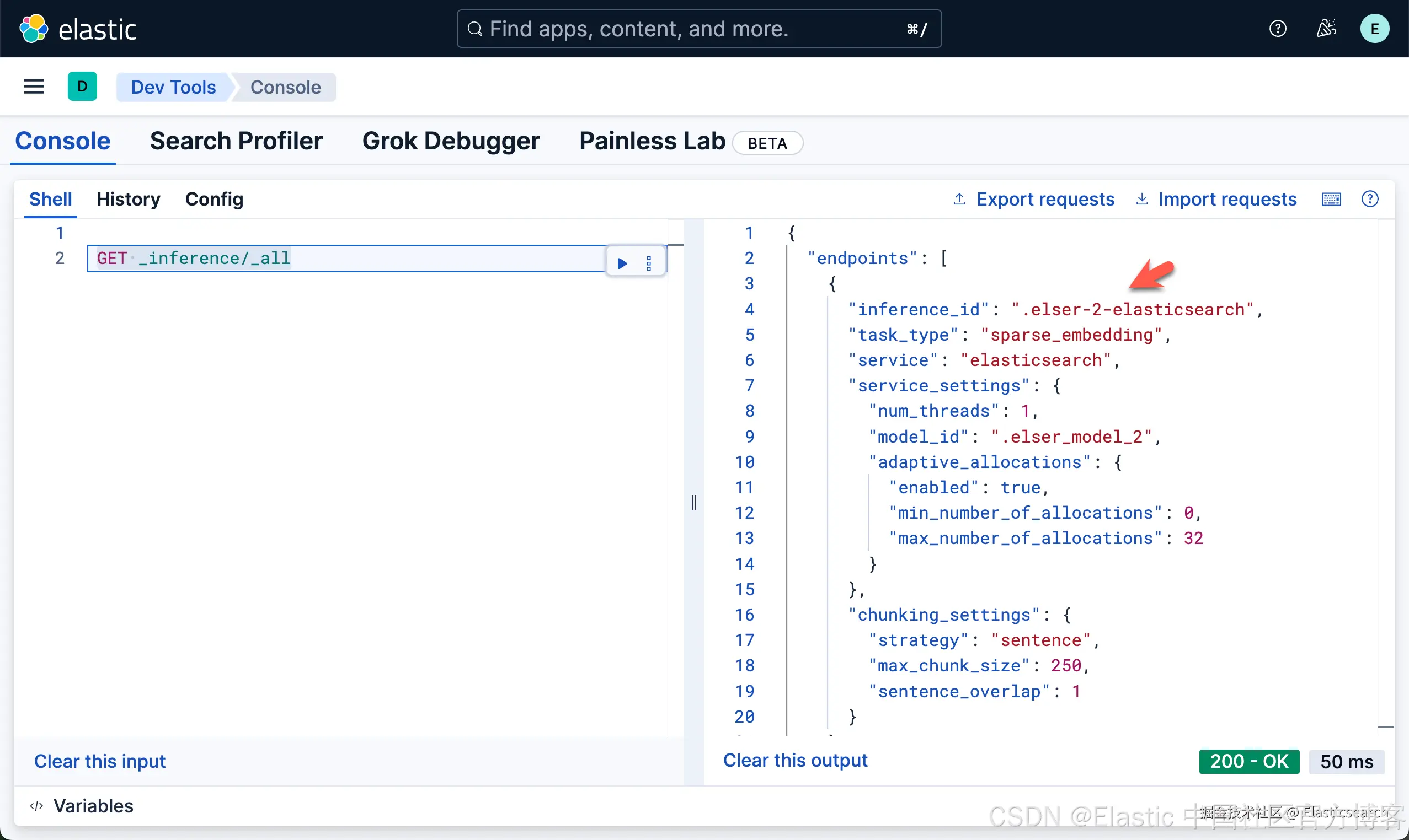 在下面,我们将使用如上所示的 .elser-2-elasticsearch inference id。