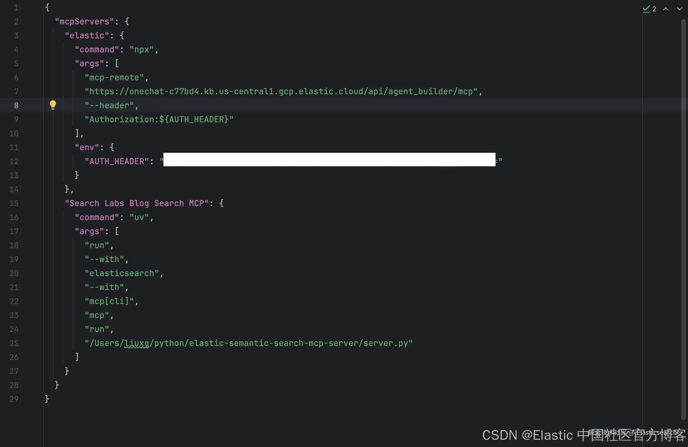 自从发布这篇博客以来,我们推出了 elastic/mcp-server-elasticsearch。你可以在博客文章中了解更多信息:Connect Agents to Elasticsearch with Model Context Protocol。对于最新的 mcp-server-elasticsearch,你需要参考文章 “将 agents 连接到 Elasticsearch 使用模型上下文协议 - docker” 来拿进行连接。