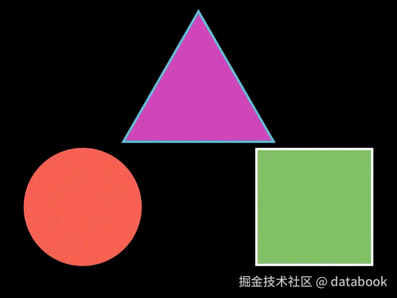 - 我们创建了三种不同的形状:圆形、正方形和三角形,并设置了它们的位置