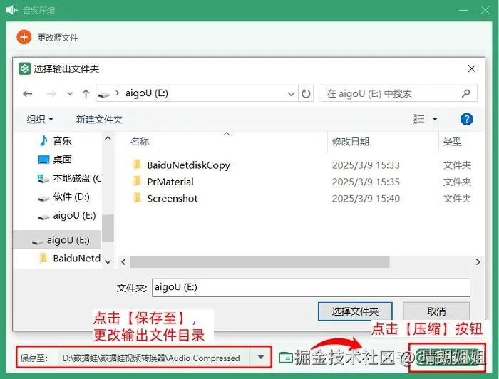 补充:在点击 【压缩】 按钮之前,您可以选择是否修改输出路径。如果您想重新更改输出路径的话,点击 【保存至】 即可更改。