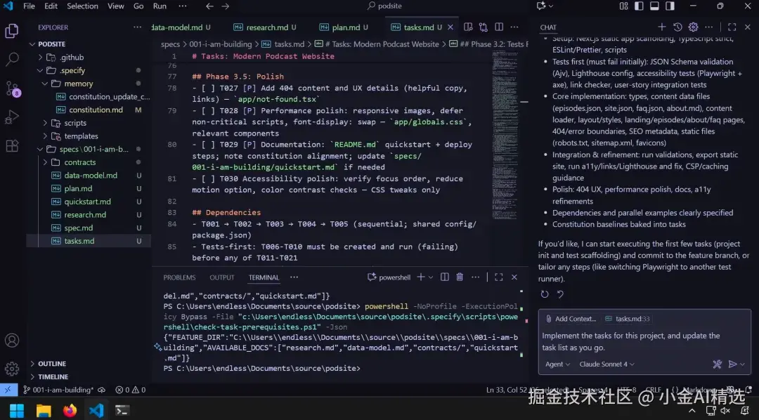 4. 自动实现 :最后用 /implement 命令,工具就会按任务列表自动生成代码,完成开发。