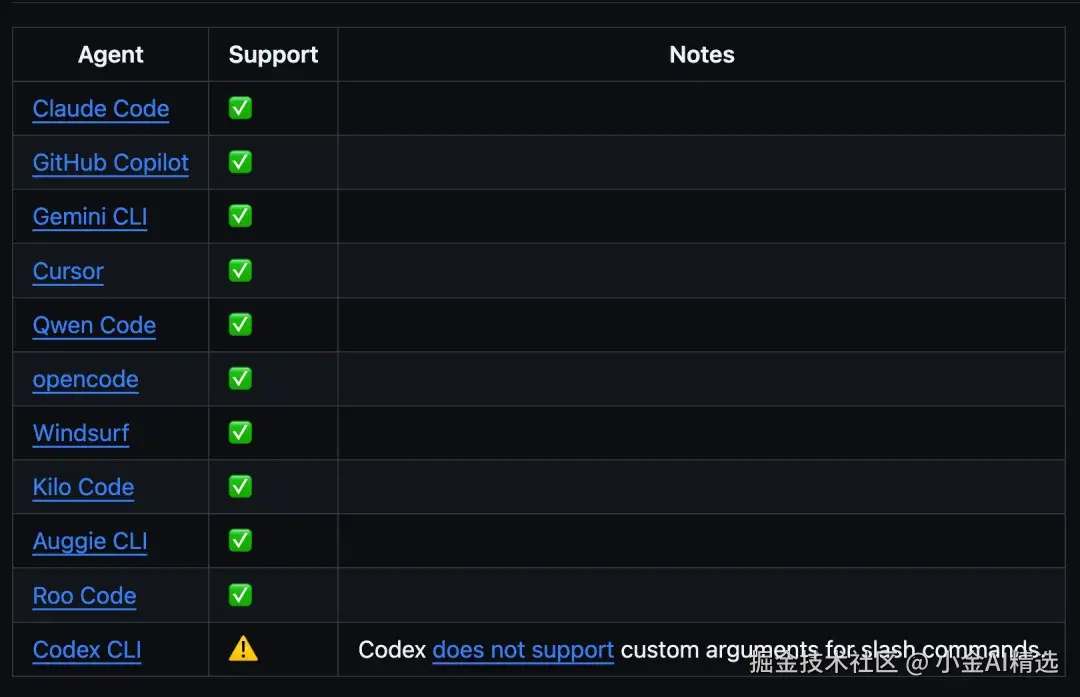 Spec Kit 支持几乎所有主流的 AI 编程工具,比如 Claude Code、GitHub Copilot、Gemini CLI、Cursor、Windsurf、Qwen Code 等,你可以选自己习惯用的。