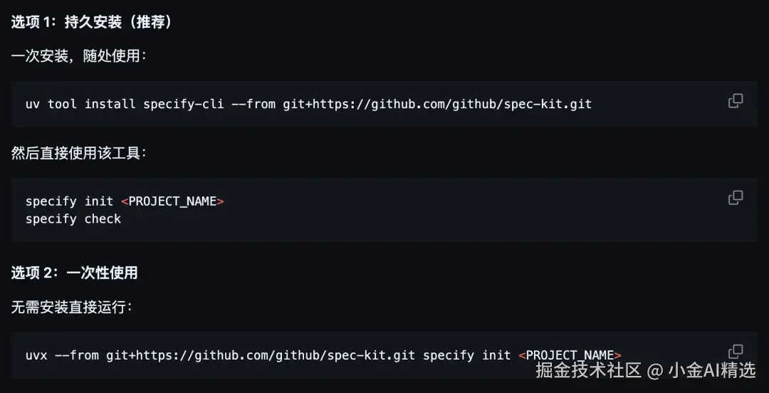 Spec Kit 的安装方式如下,一共两种方式安装: