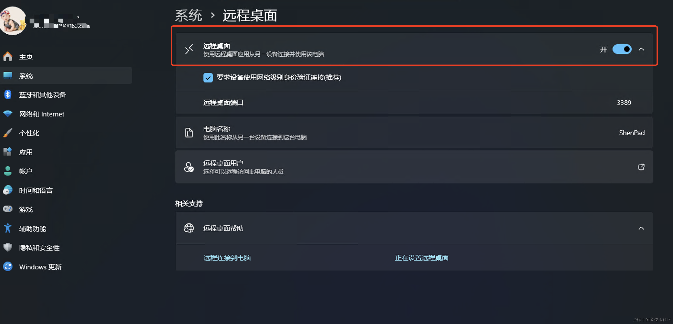windows远程桌面连接的时候用户名用什么 1024小神 2025-10-04 53 阅读1分钟 大家好,我是1024小神,想进 技术群 / 私活群 / 股票群 或 交朋友都可以私信我,如果你觉得本文有用,一键三连 (点赞、评论、关注),就是对我最大的支持~ 先到系统中把远程桌面打开,然后找到本地电脑的ip地址: 再开始找用户名: 其中15670就是username,密码就是你登陆的时候的密码 如果你有好的想法或需求,都可以私信我,我这里有很多程序员朋友喜欢用代码来创造丰富多彩的计算机世界
