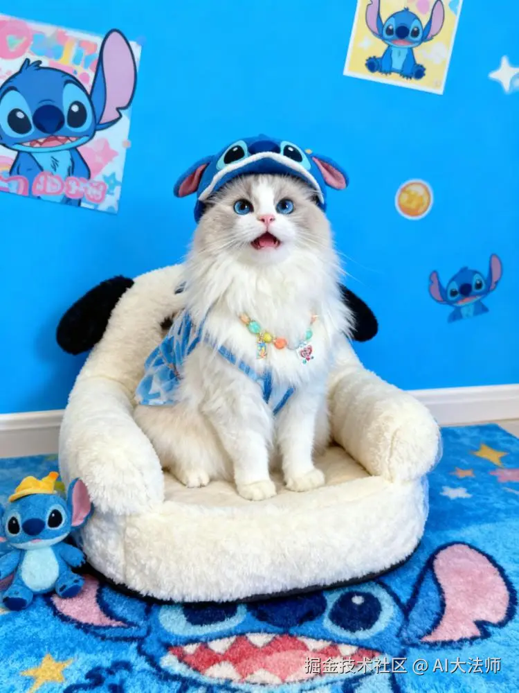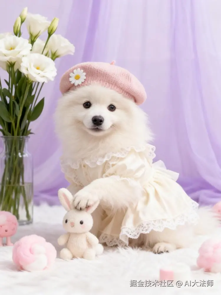 下面,我们就来看一些AI生成的宠物写真照案例吧。(多图警告)