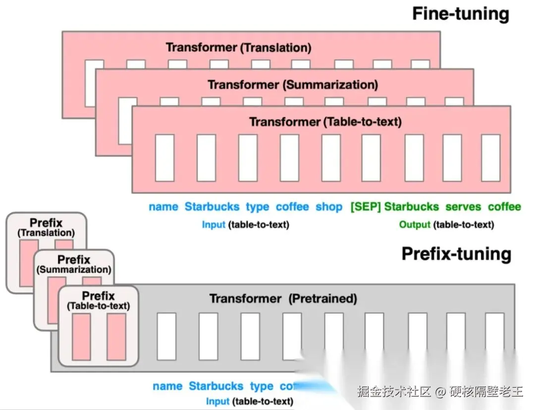 Prefix-Tuning 固定 PLM 的所有参数,只更新优化特定任务的 prefix。