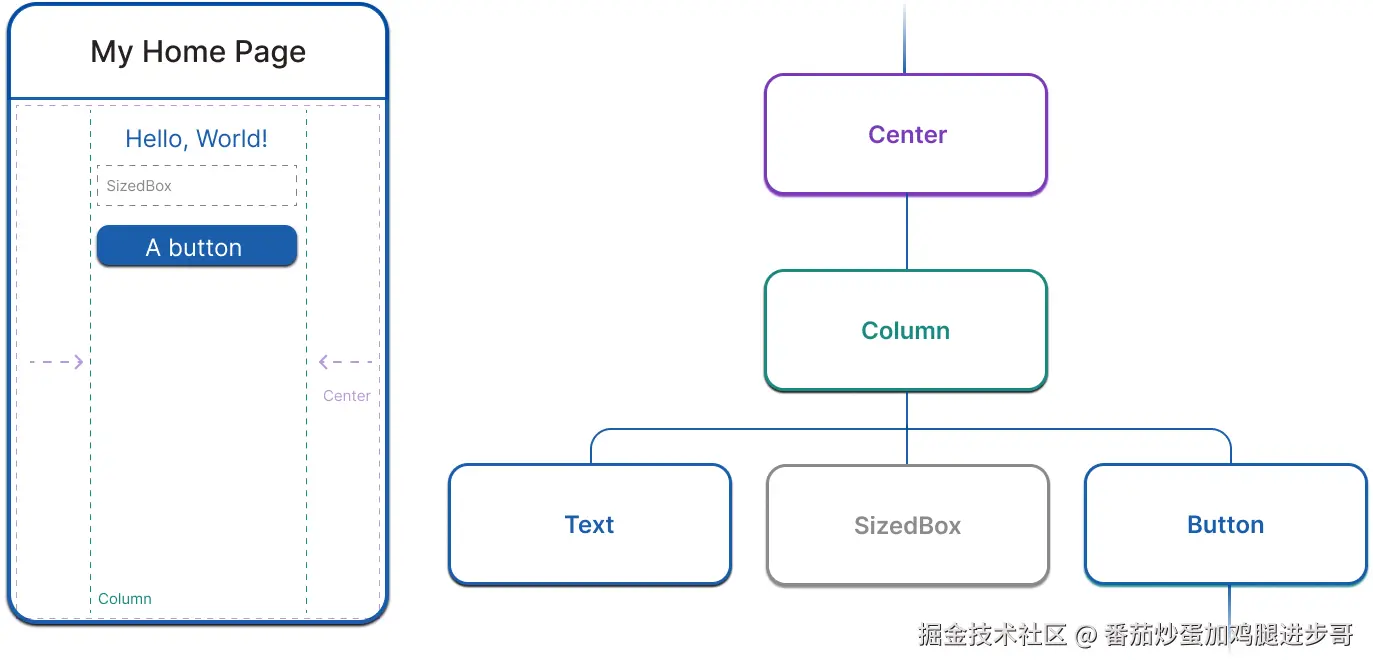 真正的布局和渲染逻辑在 Render 树中,Element 是 Widget 和 RenderObject 的粘合剂,可以理解为一个中间代理。