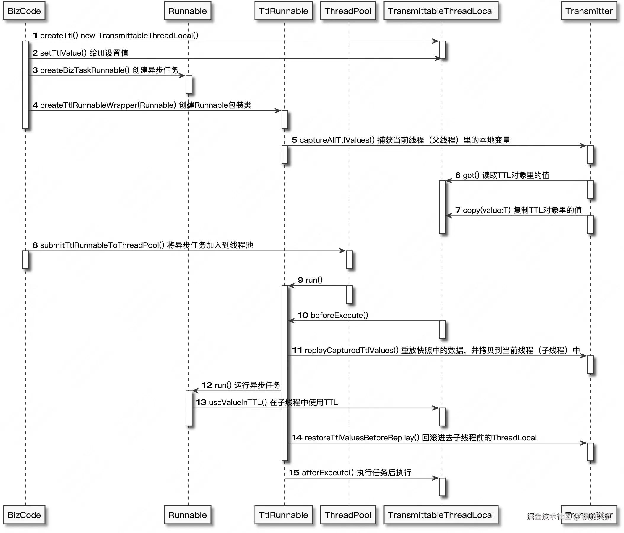 子线程执行任务时复制父线程捕捉的TransmissibleThreadLocal变量信息,并返回备份的TransmissibleThreadLocal变量信息,如下图所示: