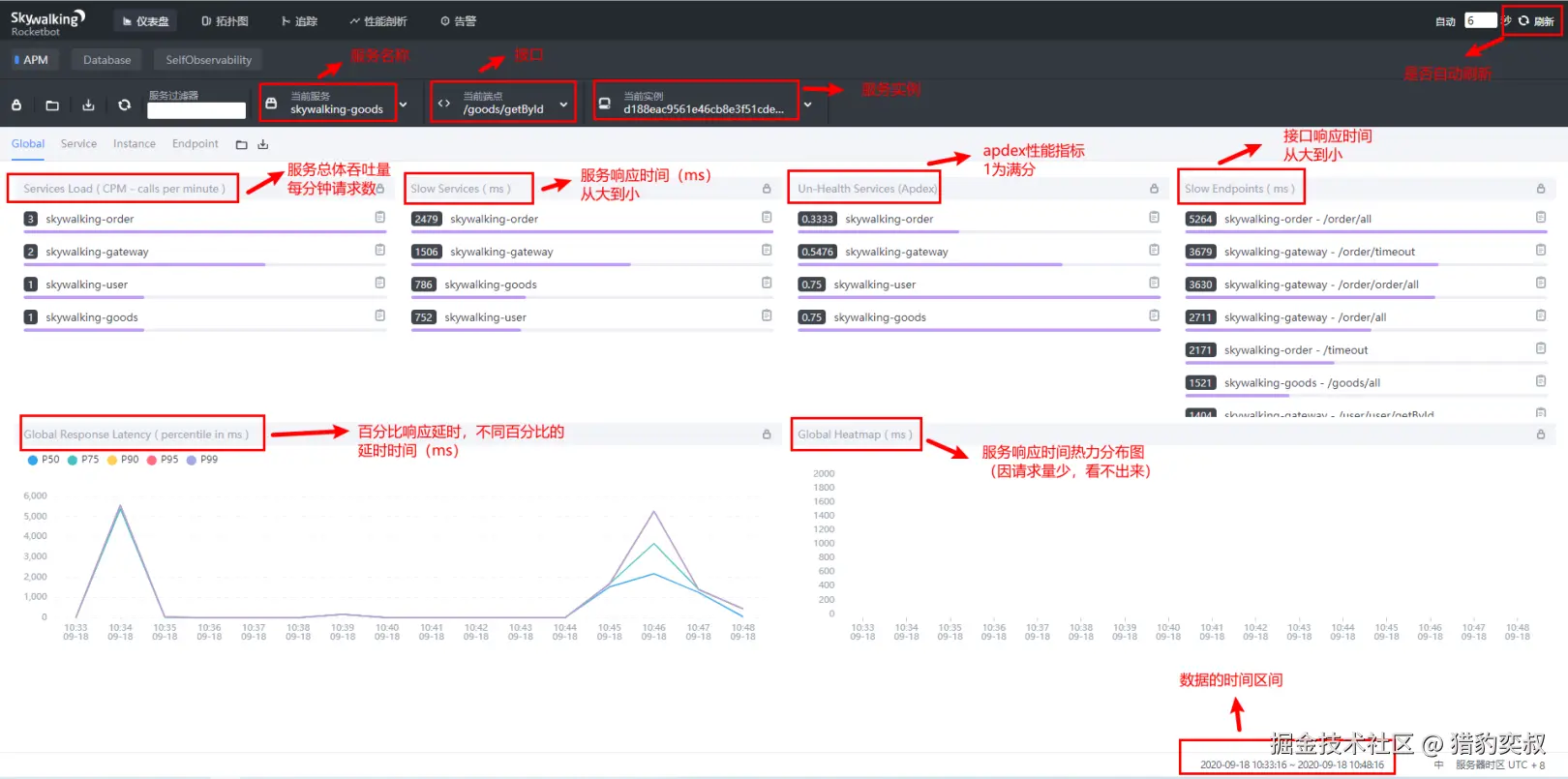 - 平台后端:支持数据聚合,数据分析以及驱动数据流从探针到用户界面的流程。分析包括Skywalking原生追踪和性能指标以及第三方来源,包括Istio、Envoy telemetry、Zipkin追踪格式化等。
