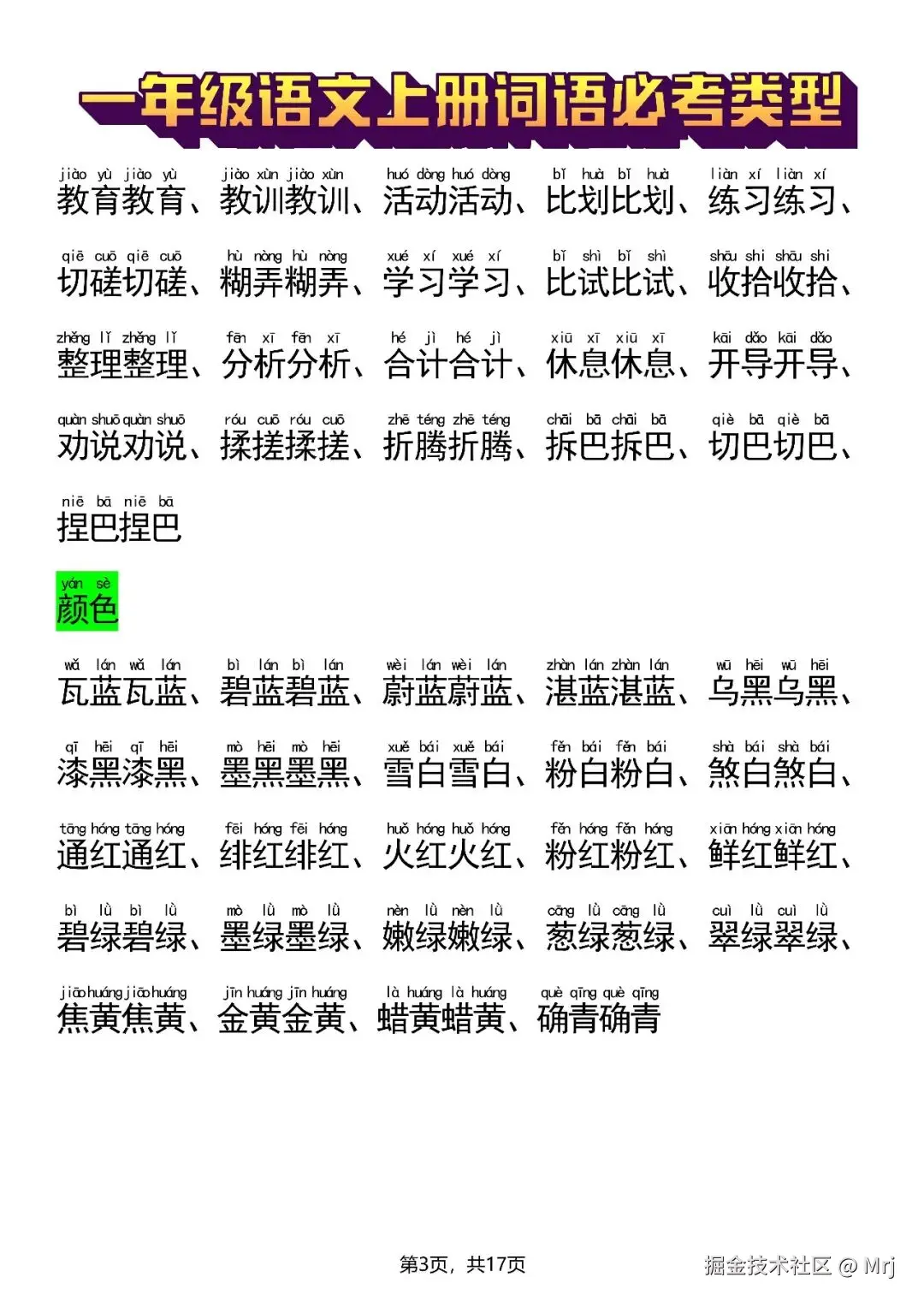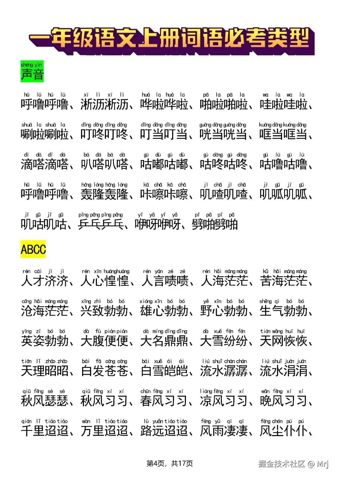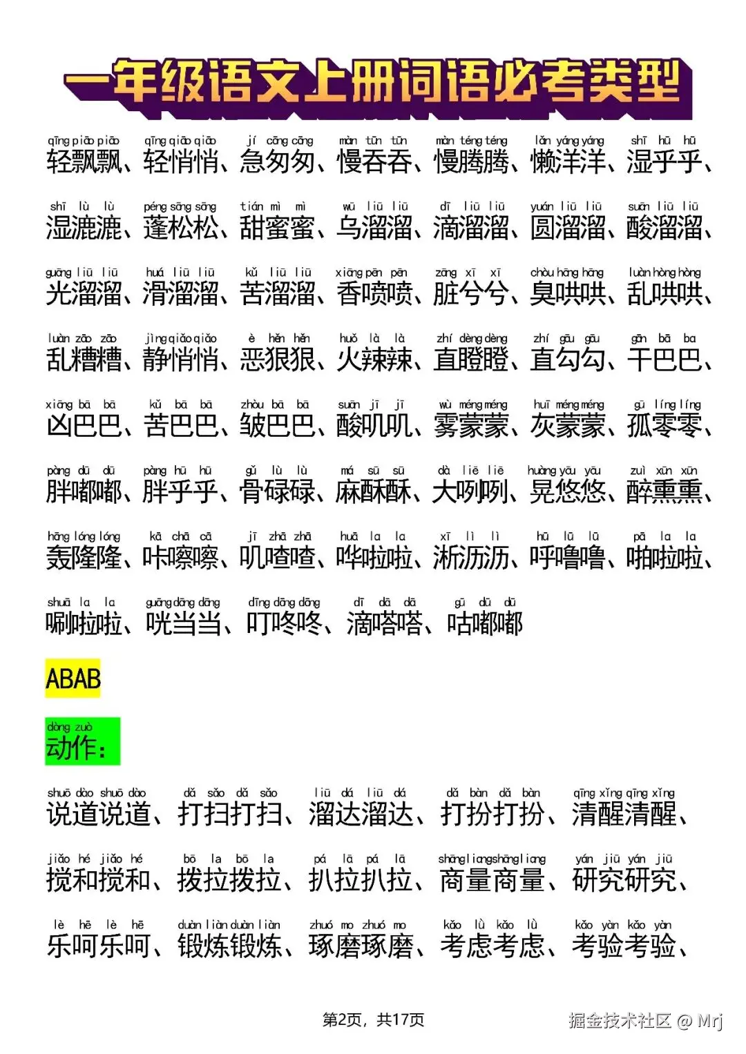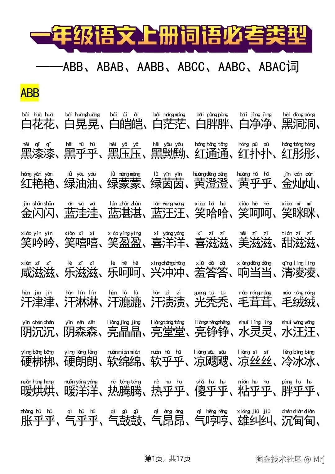新一上语文词语必考类型(abb、abab、aabb、abcc、aabc、abac、abcb类词语)17页