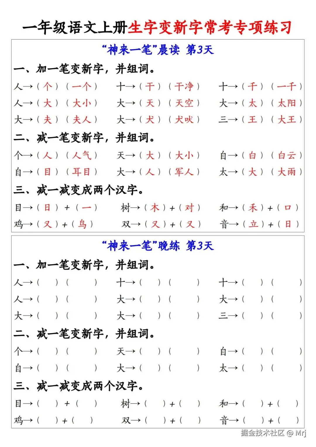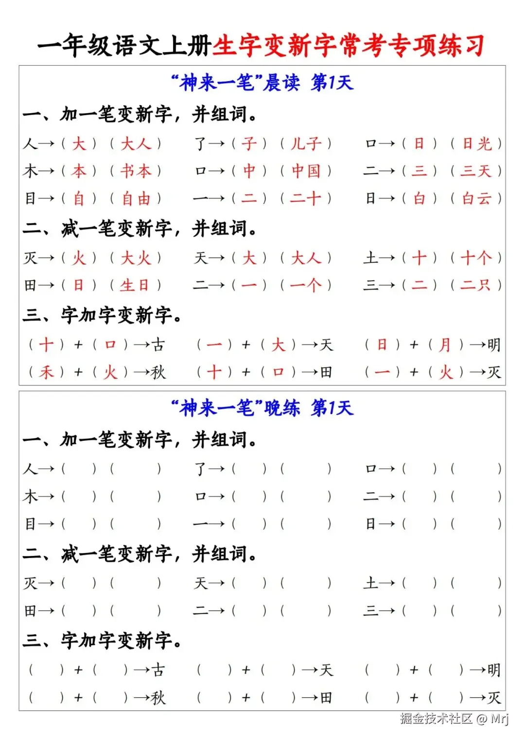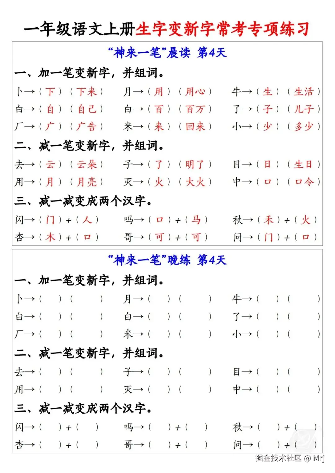 新版一年级上册语文《生字变新字》专项练习,电子版可下载可打印,这份一上生字变新字练习题,让孩子通过观察和思考,发现汉字之间的联系,帮助孩子积累更多的新字,加深对字形的记忆和理解。需要的家长抓紧打印出来,让孩子练一练吧。