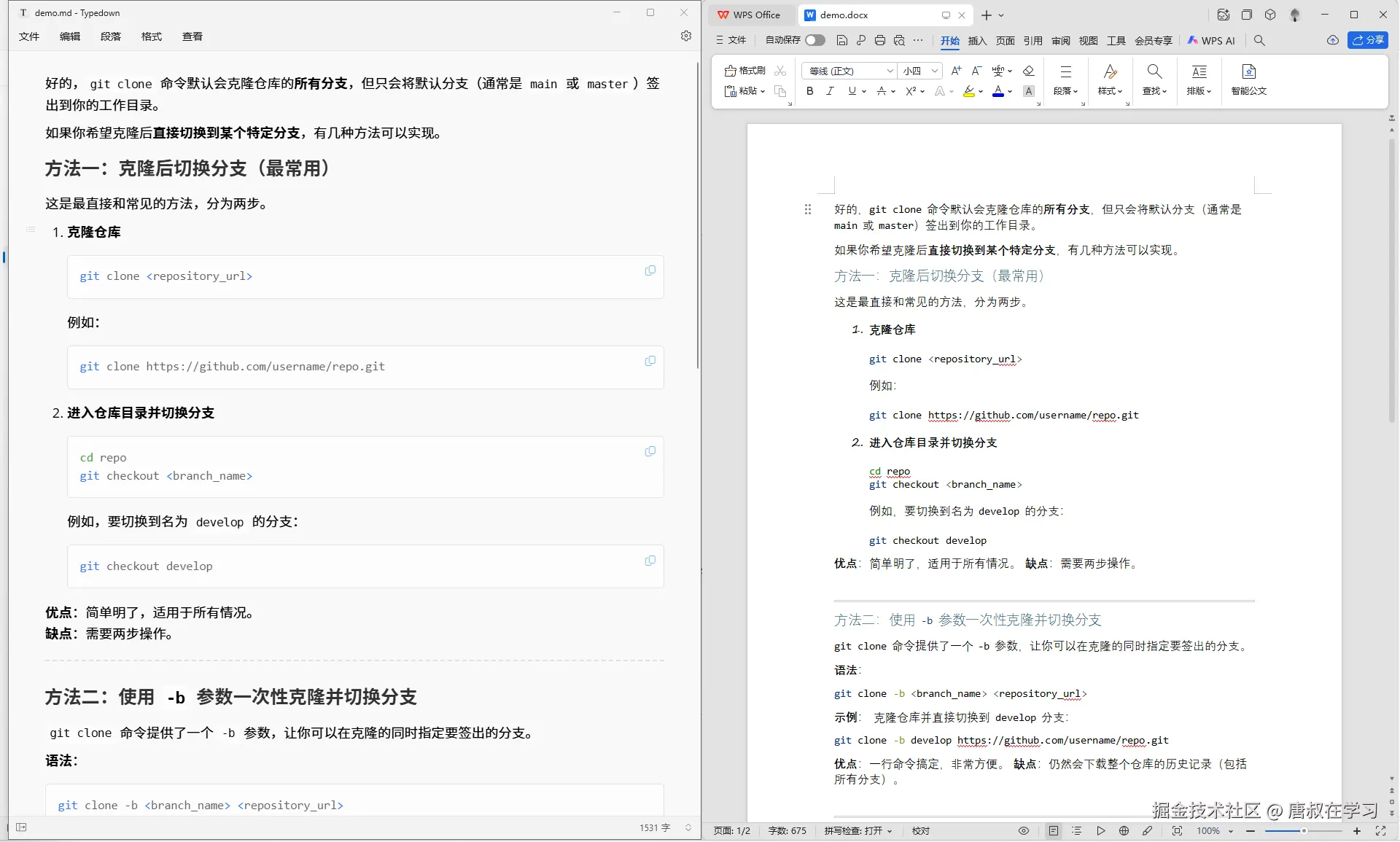这是最常见的场景,将技术文档从Markdown转换为Word:
