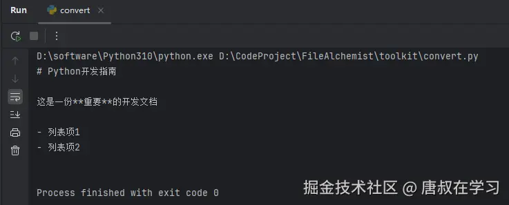 唐叔的建议:在日常开发中,善用pypandoc这样的工具,能够让你从繁琐的文档格式处理中解放出来,更专注于核心开发工作。赶快把它加入到你的开发工具箱吧!