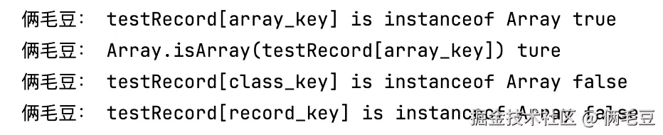 console.log("俩毛豆: testRecord[array_key] is instanceof Array false");