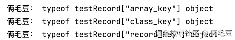 console.log("俩毛豆: testRecord[array_key] is Record false");