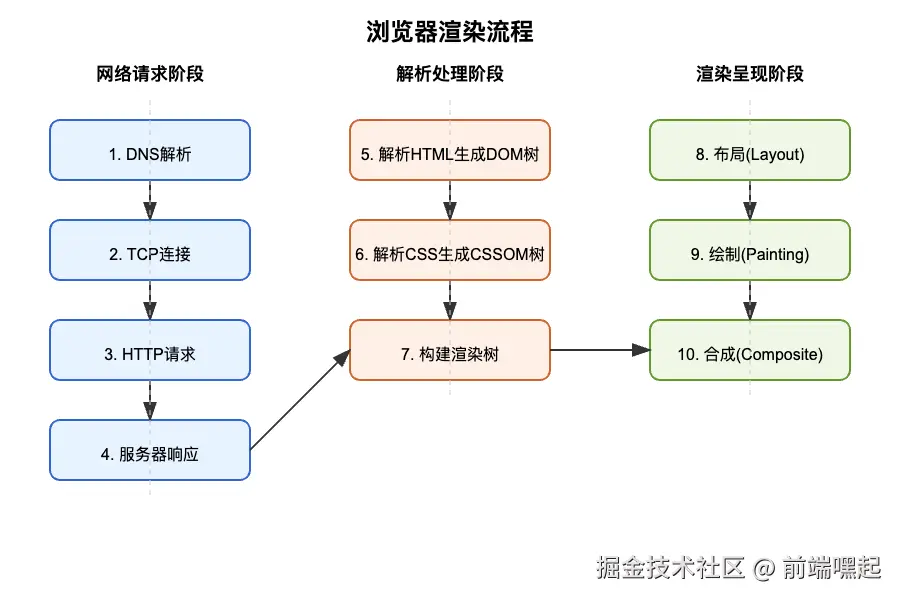 这张雷达图展示了前端开发所需的核心技能体系,包括基础的HTML结构、CSS样式和JavaScript交互,以及进阶的浏览器原理、响应式设计、性能优化、版本控制和构建工具。随着我们学习的深入,你将逐步掌握这些技能,从一名新手成长为一名合格的前端开发者。