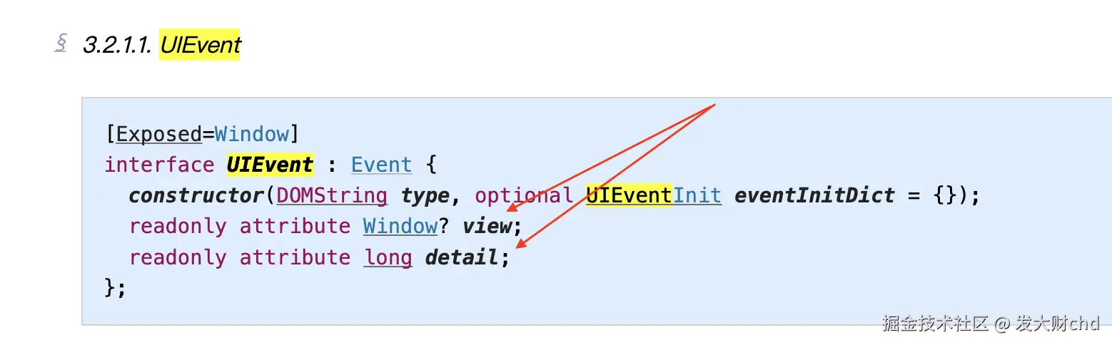 例如点击事件的原生事件是 PointerEvent,继承链:PointerEvent → MouseEvent → UIEvent → Event。