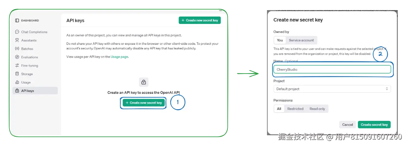 - 将生成的key复制,并打开CherryStudio的服务商设置