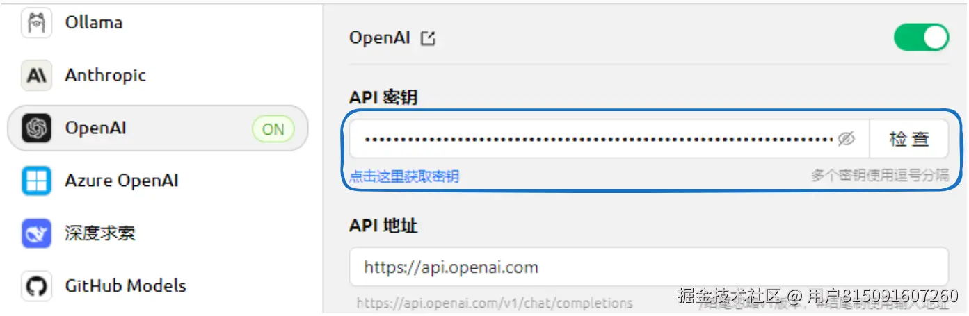 - 找到服务商OpenAI,填入刚刚获取到的key