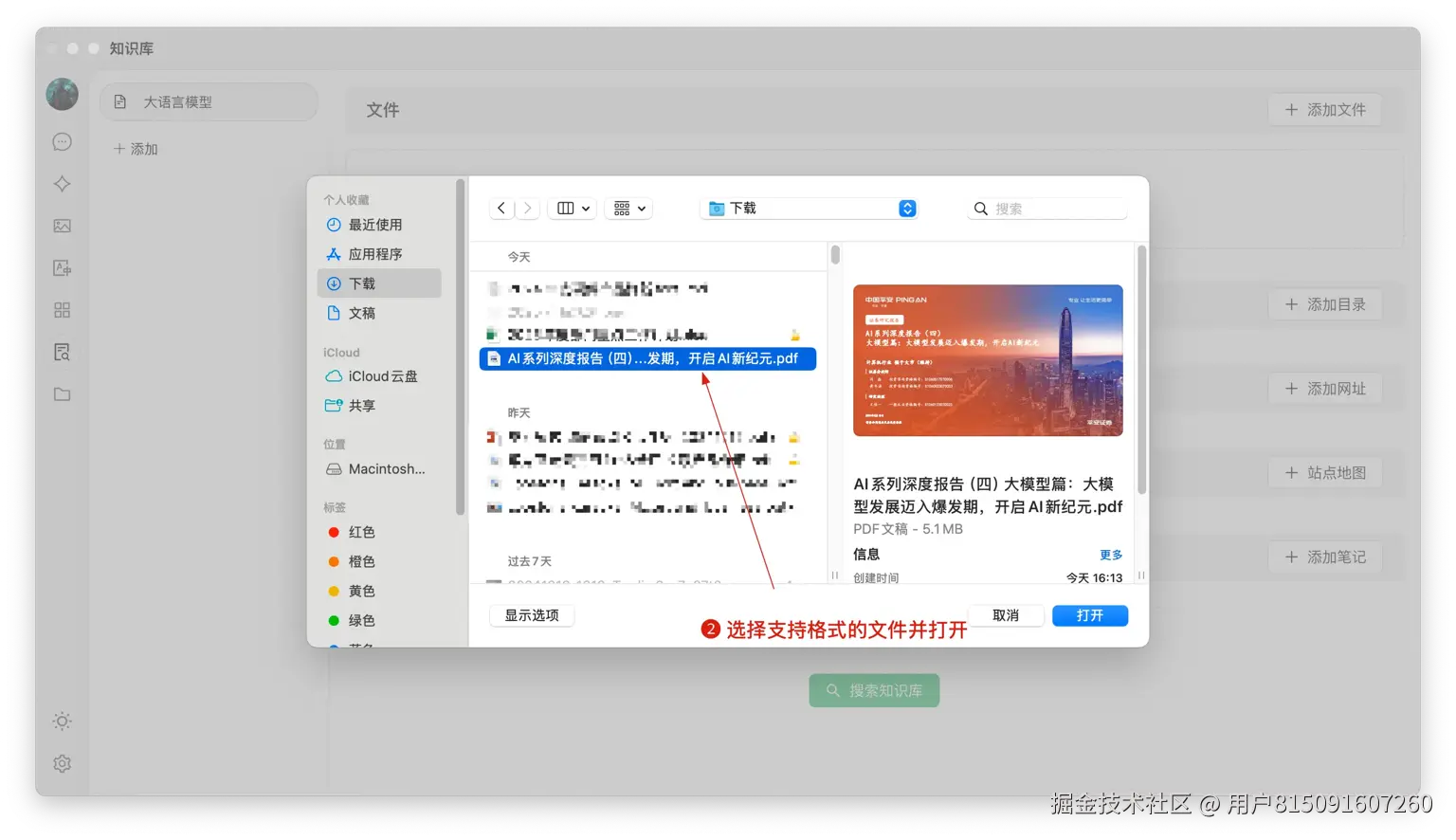 - 选择文件:选择支持的文件格式,如 pdf,docx,pptx,xlsx,txt,md,mdx 等,并打开;