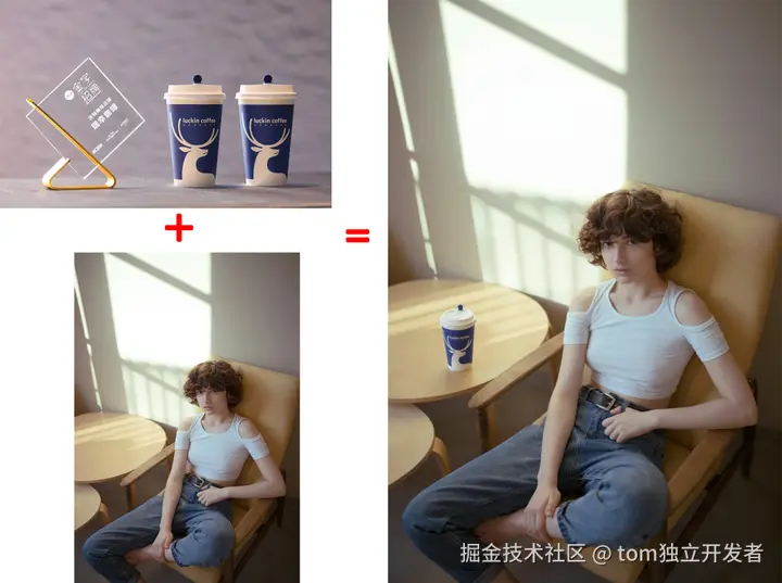 提示词:图二桌子上放上一杯,图一的咖啡杯