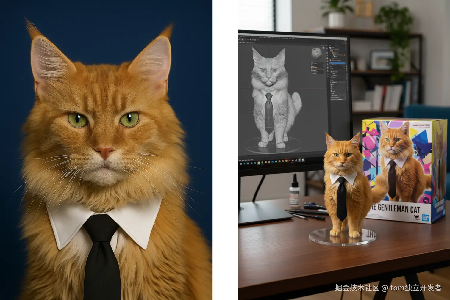 提示词:create a 1/7 scale commercialized figure of thecharacter in the illustration, in a realistic styie and environment.Place the figure on a computer desk, using a circular transparent acrylic base without any text.On the computer screen, display the ZBrush modeling process of the figure.Next to the computer screen, place a BANDAI-style toy packaging box printedwith the original artwork.