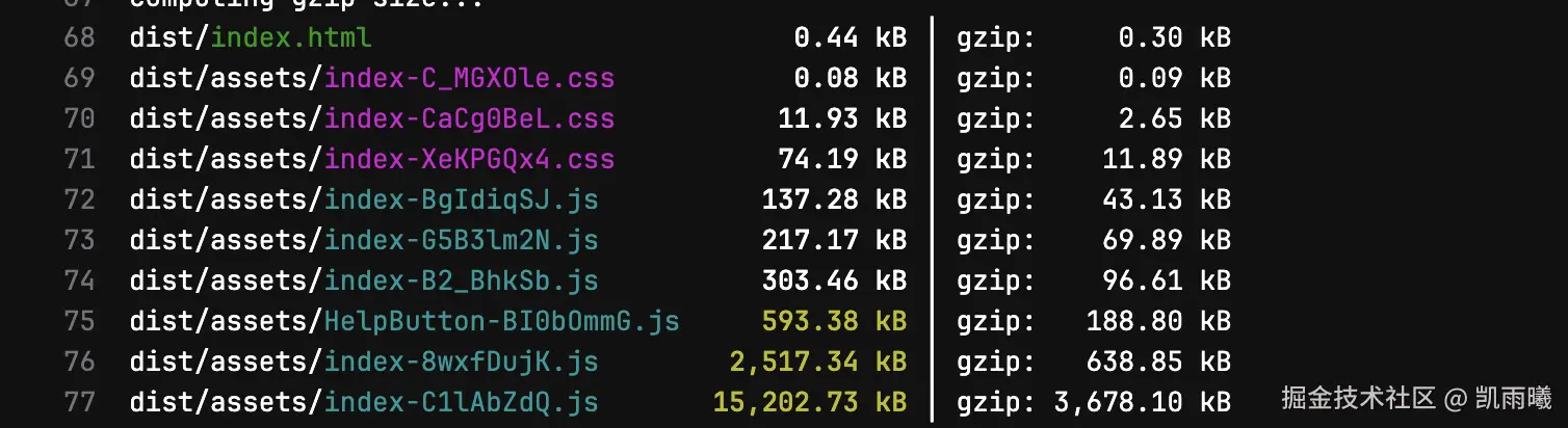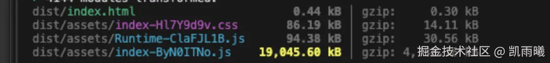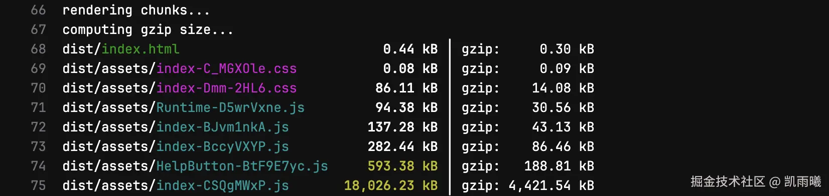 原来打包产物未压缩是19045.6kb,而gzip压缩后是4738.16kb。可知,生产环境请求的大小是19045.6kb,说明上传到的产物没有压缩。