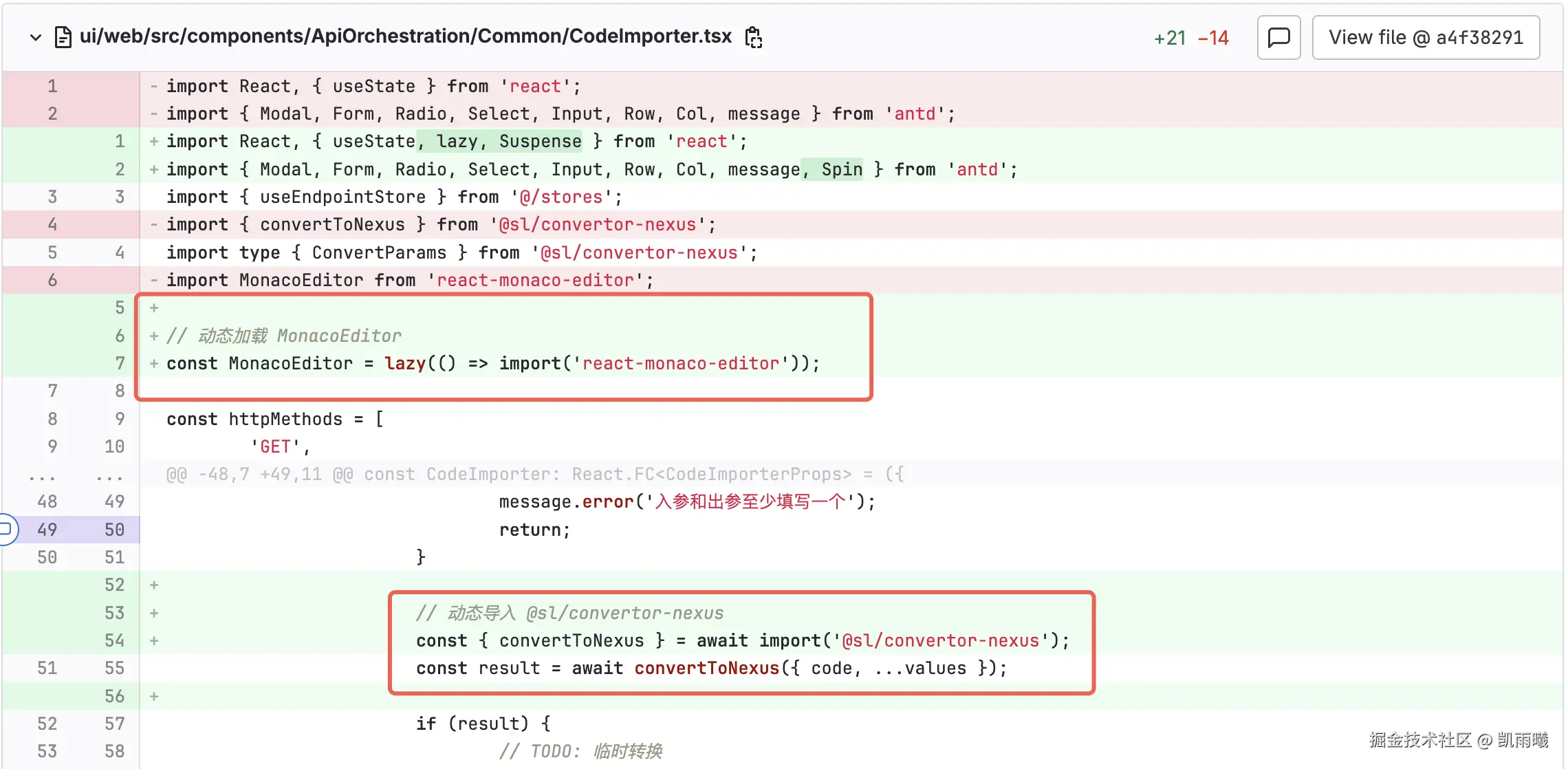 这些功能仅在用户点击"快速导入代码"时通过 CodeImporter组件使用,属于低频功能而非首屏必需。因此,最佳优化方案是采用动态加载策略,将相关依赖从主包中分离,在用户实际使用该功能时再按需加载相关依赖,从而显著提升首屏加载性能。