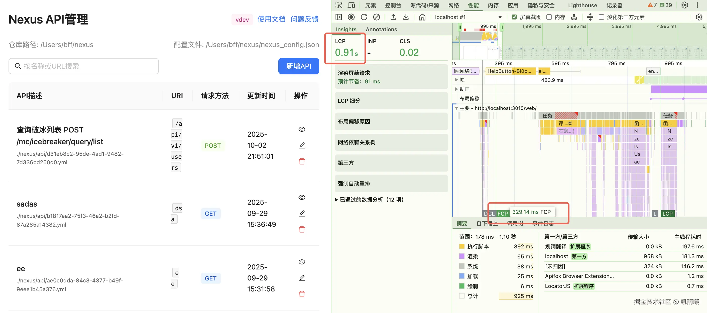 - FCP进一步优化至 329.14ms LCP进一步降低到 0.91秒