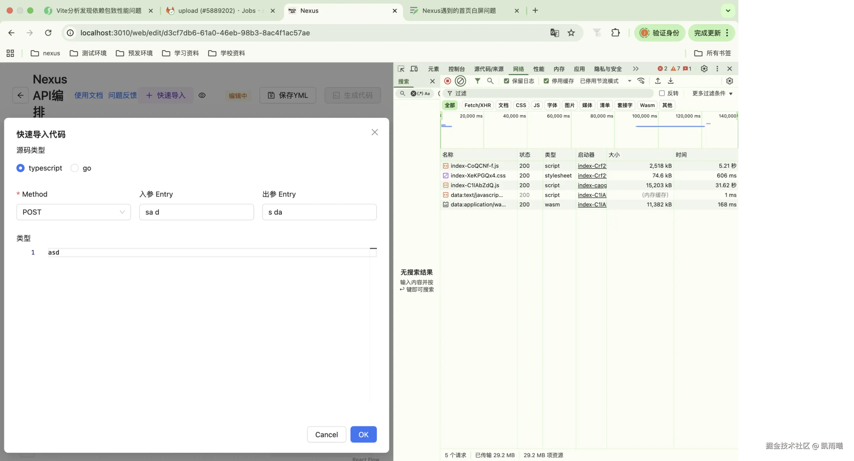 - 组件/功能级懒加载:对API编排页面中的重型功能(代码编辑器、TS导入)进行更细粒度的按需加载,成功解决了该页面的白屏问题。