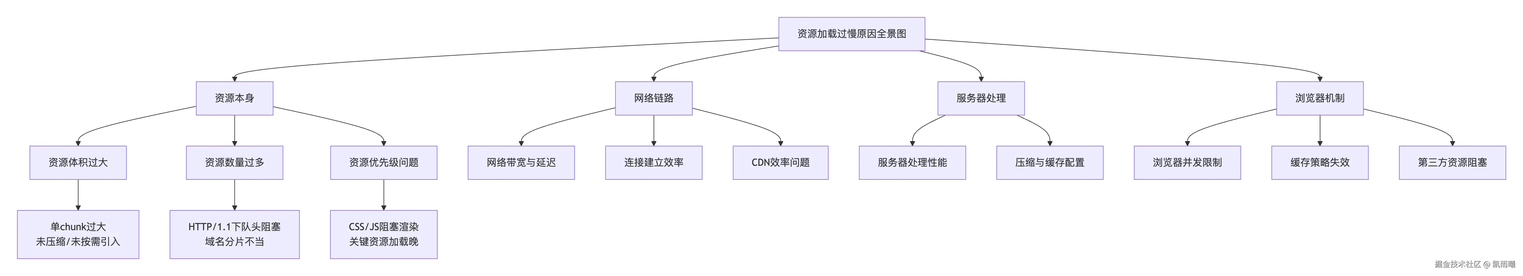 我们可以从 “资源、网络、服务器、浏览器” 四个维度来系统性地分析所有可能造成“资源加载过慢”的原因。