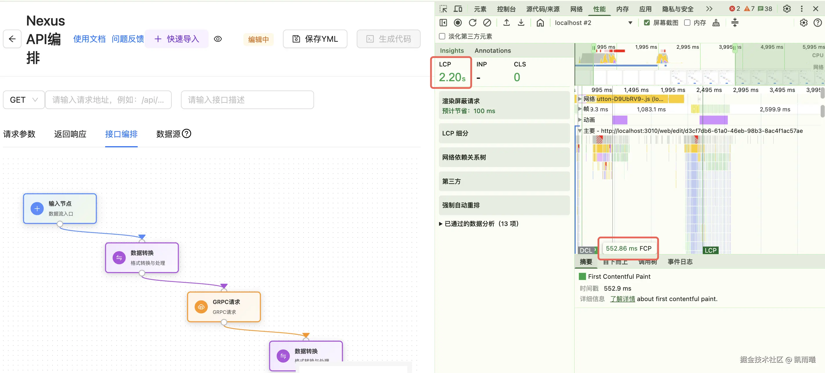 - FCP(首次内容绘制): 552.86ms LCP(最大内容绘制): 2.20s