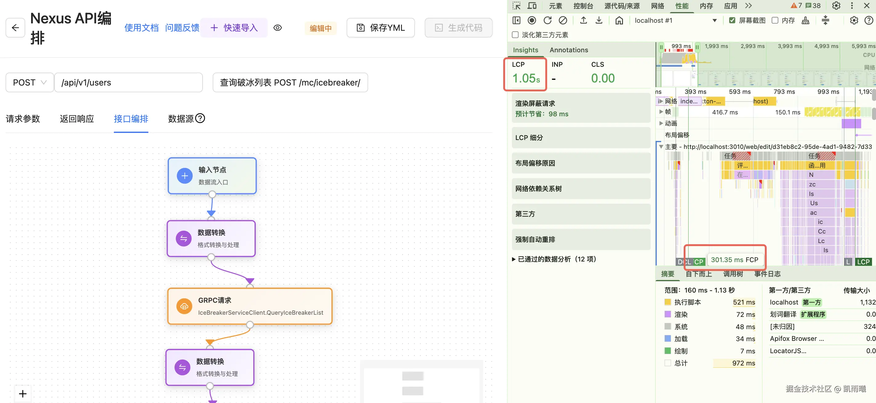 | API编排页 (ApiOrchestration) | 301.35ms | 1.05秒 | 总体积显著减小 | |||