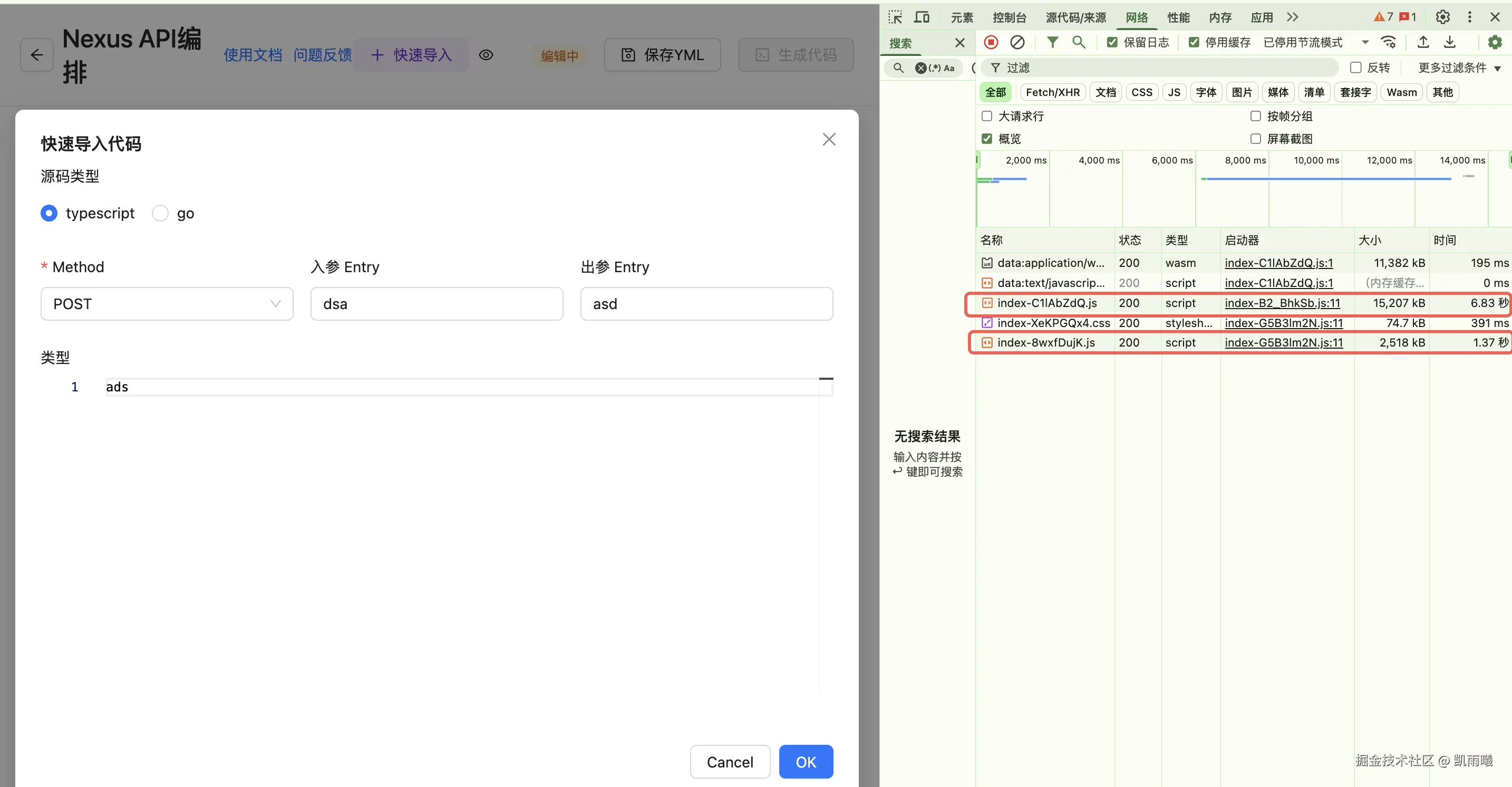 代码编辑器功能从5.21秒下载时间优化至1.37秒 TS导入功能从31.62秒网络总耗时优化至6.83秒