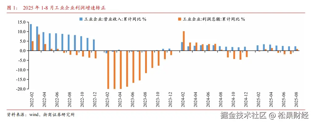 据浙商证券分析,今年1-8月,规模以上工业企业利润已由负转正,营收增速则相对平稳。利润增长快于营收增长,这一现象背后,“反内卷”带来的市场预期改善和价格修复起到了关键支撑作用。