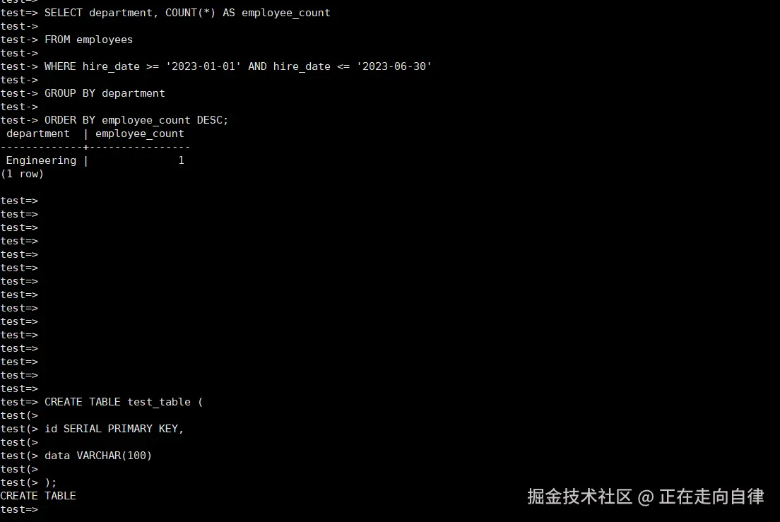 设计了多个并发测试场景,以模拟不同的实际业务情况 。首先,创建了一个简单的测试表test_table,包含id(SERIAL类型,作为主键)和data(VARCHAR(100)类型)两个字段 。使用以下 SQL 语句创建表: