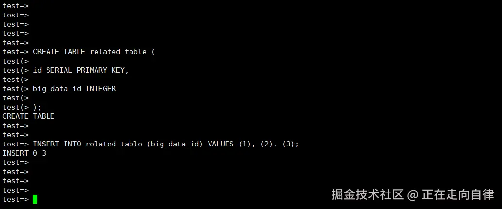 最后,进行复杂的多表连接查询测试 。创建另一个表related_table,包含id(SERIAL类型,主键)和big_data_id(INTEGER类型,关联big_data_table的id字段)两个字段 。使用以下 SQL 语句创建表并插入一些关联数据: