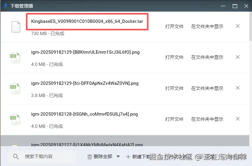 本文使用的是KingbaseES_V009R001C010B0004_x86_64_Docker.tar 镜像包,大小约 754MB。