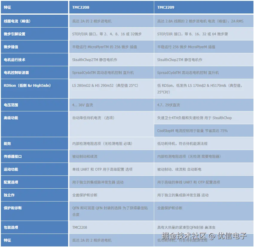 TMC22XX系列电机驱动器无缝集成到不同的环境中,提供与现有系统的兼容性,同时通过先进的降噪功能提高效率。利用 TRINAMIC 的尖端技术,这些驱动器不仅实现了卓越的能源效率,而且还能保持高电机扭矩。通过 SpreadCycle 进行快速电流调节,可实现精确的电机控制,满足工业需求和个人应用。 TMC2208和TMC2209驱动器拥有强大的 MOSFET,擅长管理巨大的电机电流,确保在不同负载下保持稳定的性能。功能丰富的通用异步接收器-发射器 (UART) 接口可对电机功能进行详细控制,轻松集成到复杂系统中并允许根据特定需求进行调整。这种适应性对于现成设置不足的定制应用来说非常宝贵。配置可以存储在一次性可编程 (OTP) 存储器中,突出了这些驱动程序满足持久和多样化作要求的能力。TMC2208和TMC2209驱动器在保持高精度的同时,在降噪方面表现出色。这与人们对人体工程学和有利于创造力和生产力的环境的日益重视相一致。 TMC22XX驱动器通过精确、静音的作重新定义了步进电机应用,提供了符合当今对效率和可靠性期望的经济高效的解决方案。Centric 功能确保这些驱动器不仅满足当前的技术需求,而且为未来的进步做好准备。