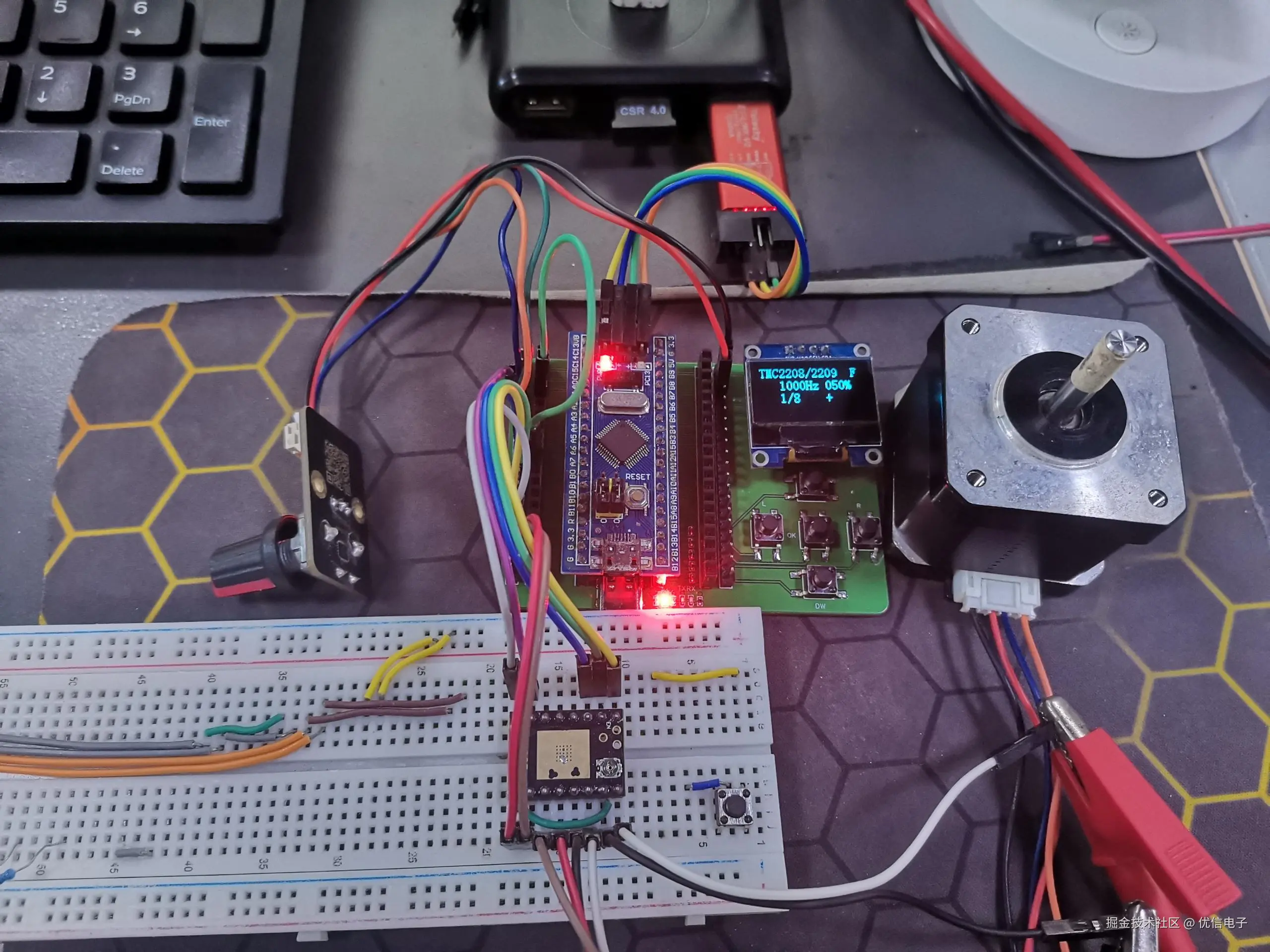 STM32F103C8T6最小系统板、TMC2209驱动板、EC11旋转编码器、OLED显示屏、按键等。