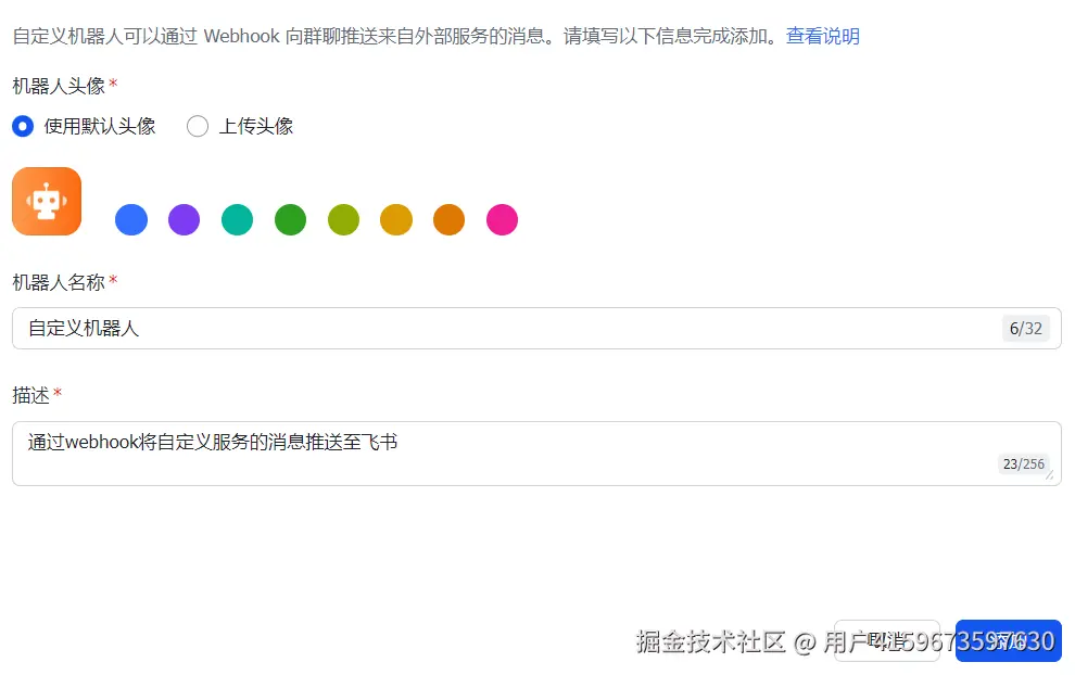 步骤一:飞书群组添加机器人打开飞书群组,在群组设置中选择群机器人选择添加机器人,自定义机器人