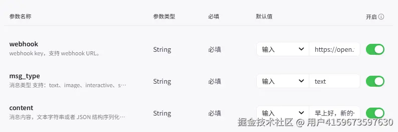 - content 填 你要发的内容(此处我是写死的,你也可以引用应用生成的结果)