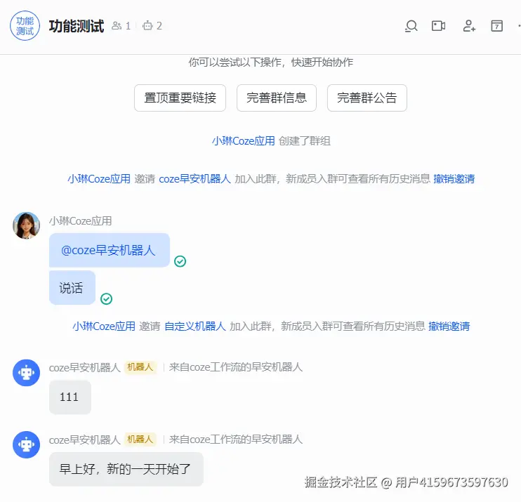 这不仅仅是简单的“连接”,而是让你在Coze中构建的自动化工作流,能直接在飞书这个你每天使用的协作平台上,主动为你和你的团队提供服务。