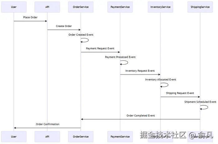 基于协同编排的 Saga:每个服务都会监听事件,并根据接收到的事件来决定是否继续执行下一步操作。这种去中心化模式非常适合松耦合的服务。