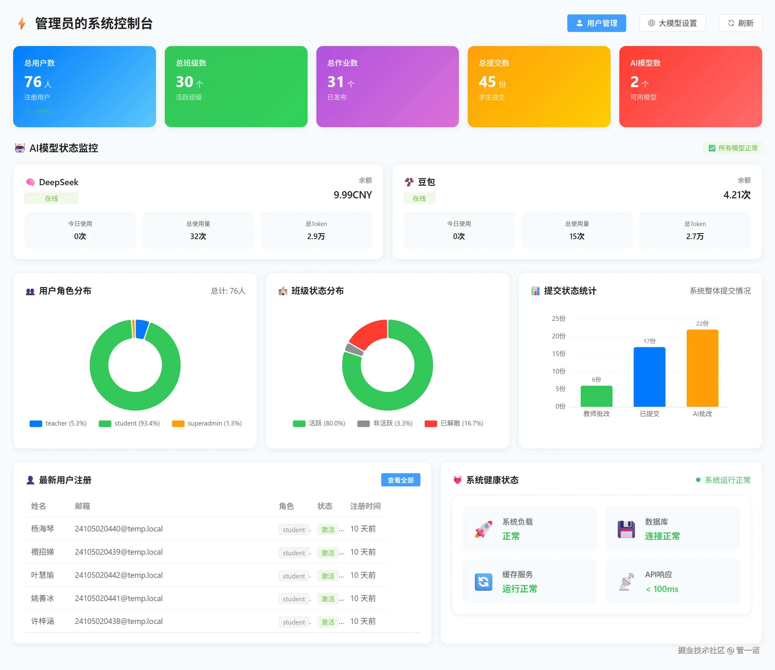 - 系统配置管理:AI模型参数调整,批改规则配置